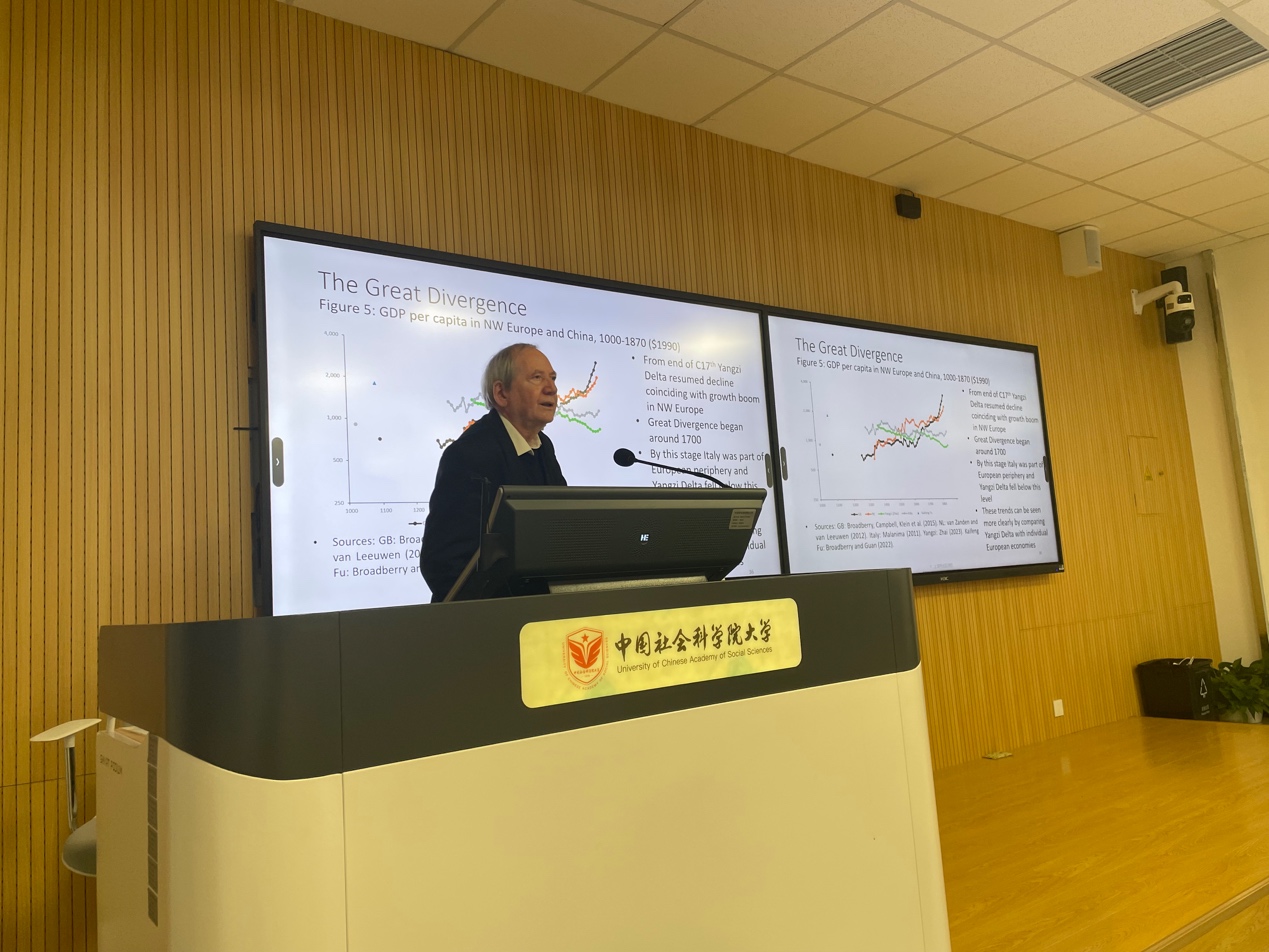 为进一步提升学术建设水平,助力师生拓宽国际学术视野,2025 年 12 月 18 日晚,英国学术院院士、牛津大学经济史教授斯蒂芬·诺埃尔·布罗德伯里(Stephen N. Broadberry)受邀在良乡校区教学综合楼 401 教室带来题为 “大分流的核算分析” 的学术讲座。我校副校长兼历史学院执行院长展龙教授在讲座前致辞。